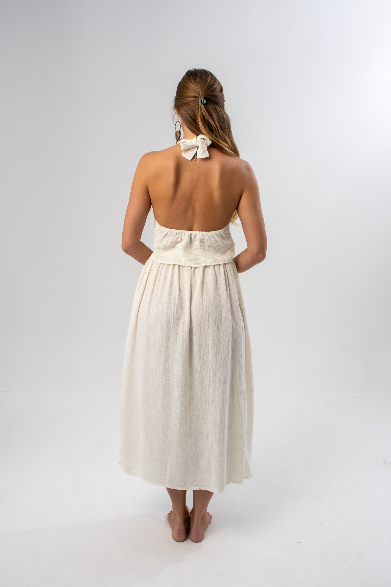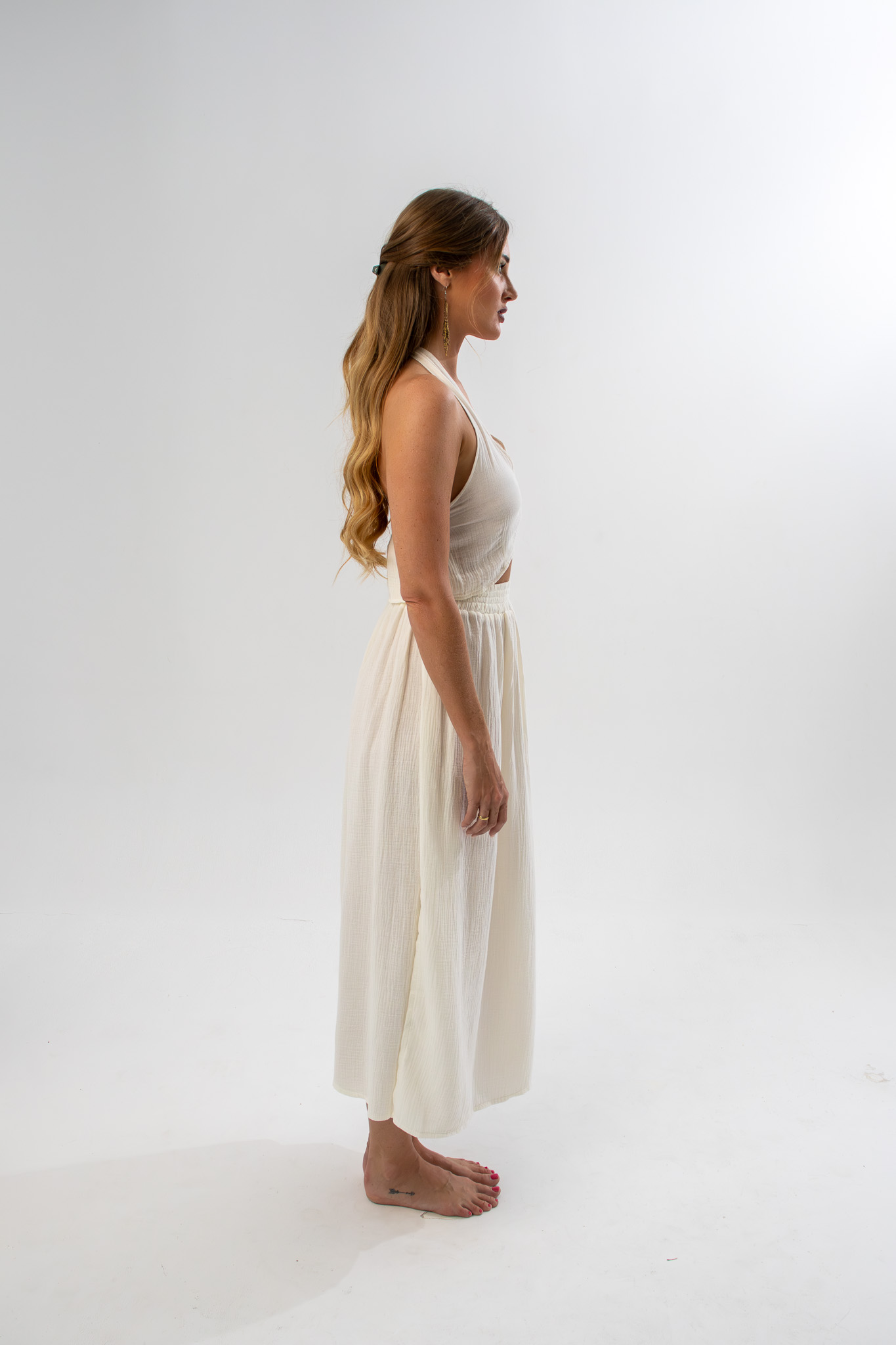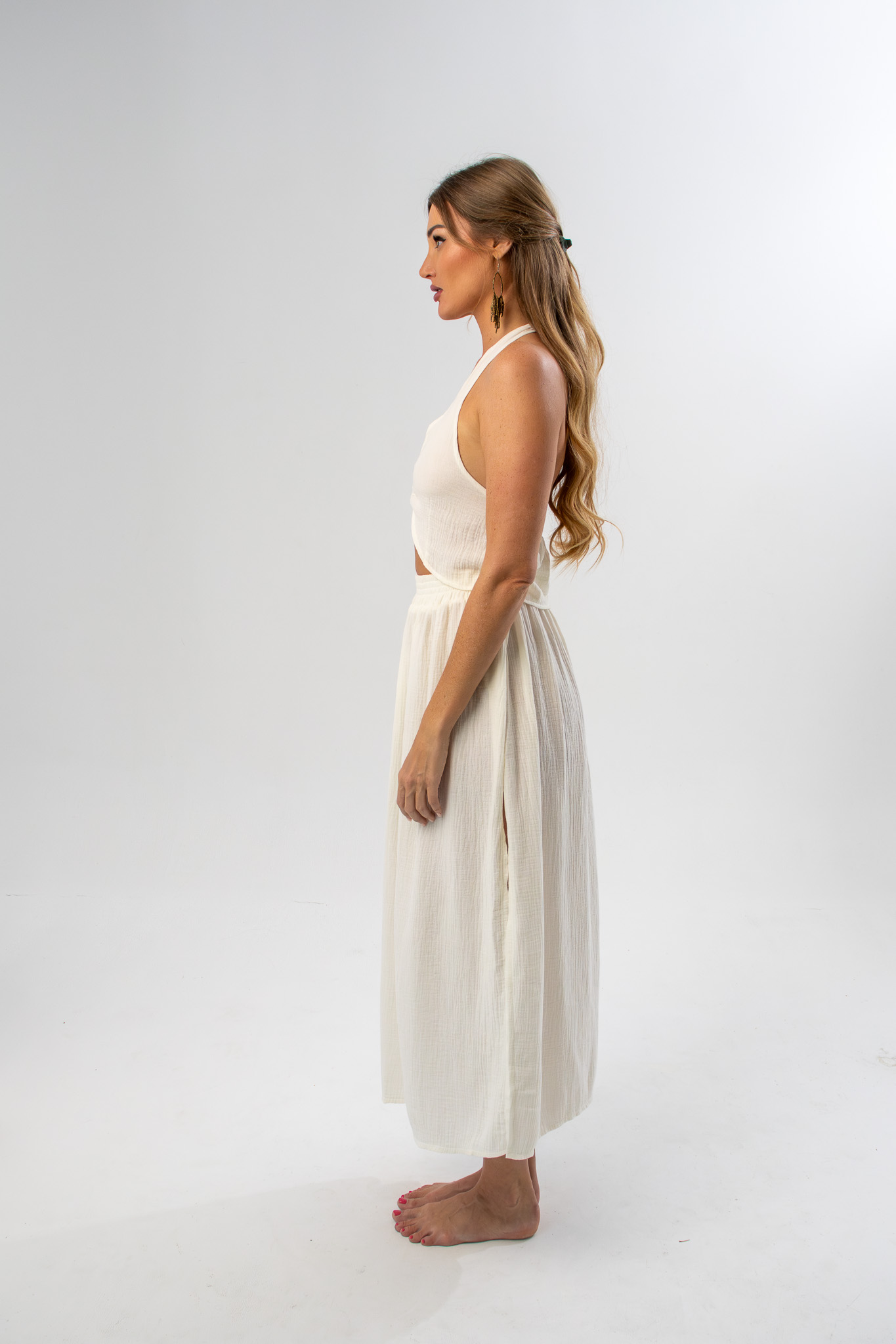Effortlessly cool and undeniably chic, the March Top is crafted from 100% muslin cotton for a lightweight, breathable feel. Featuring a bold metal ring detail, it adds a subtle edge to its relaxed silhouette. Perfect for beach days, casual outings, or layering with your favorite pieces, this top blends comfort and statement style in one.