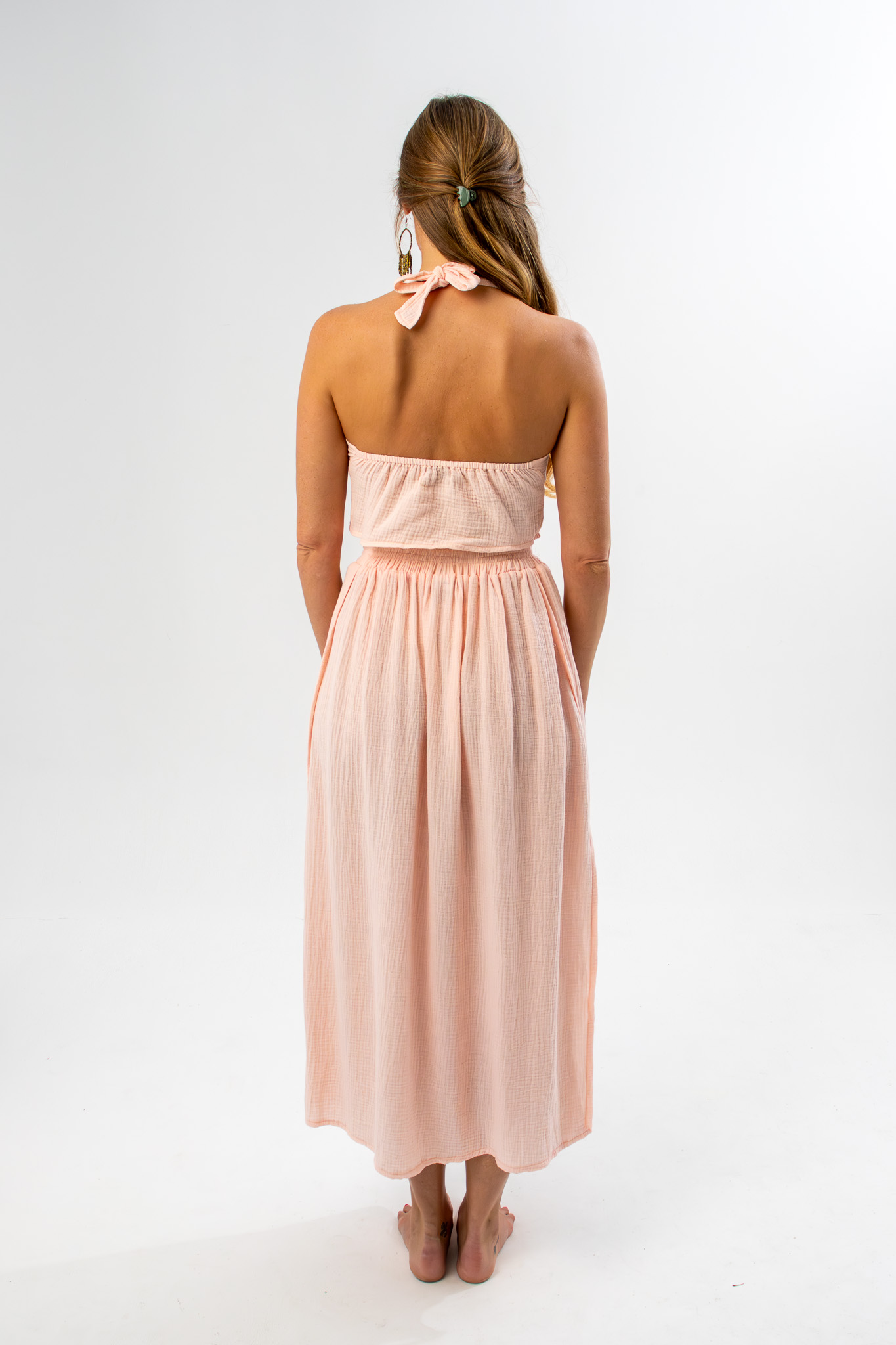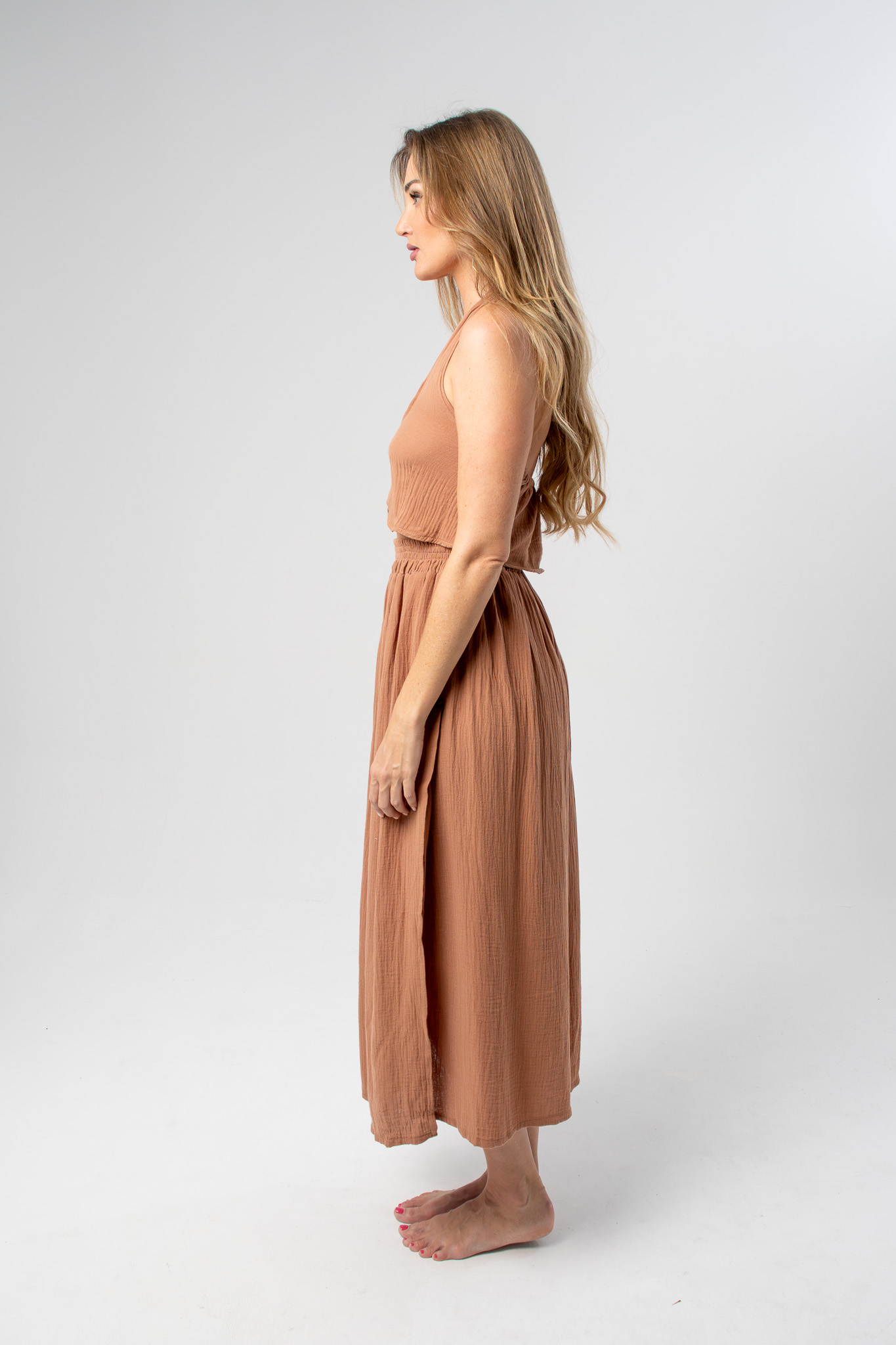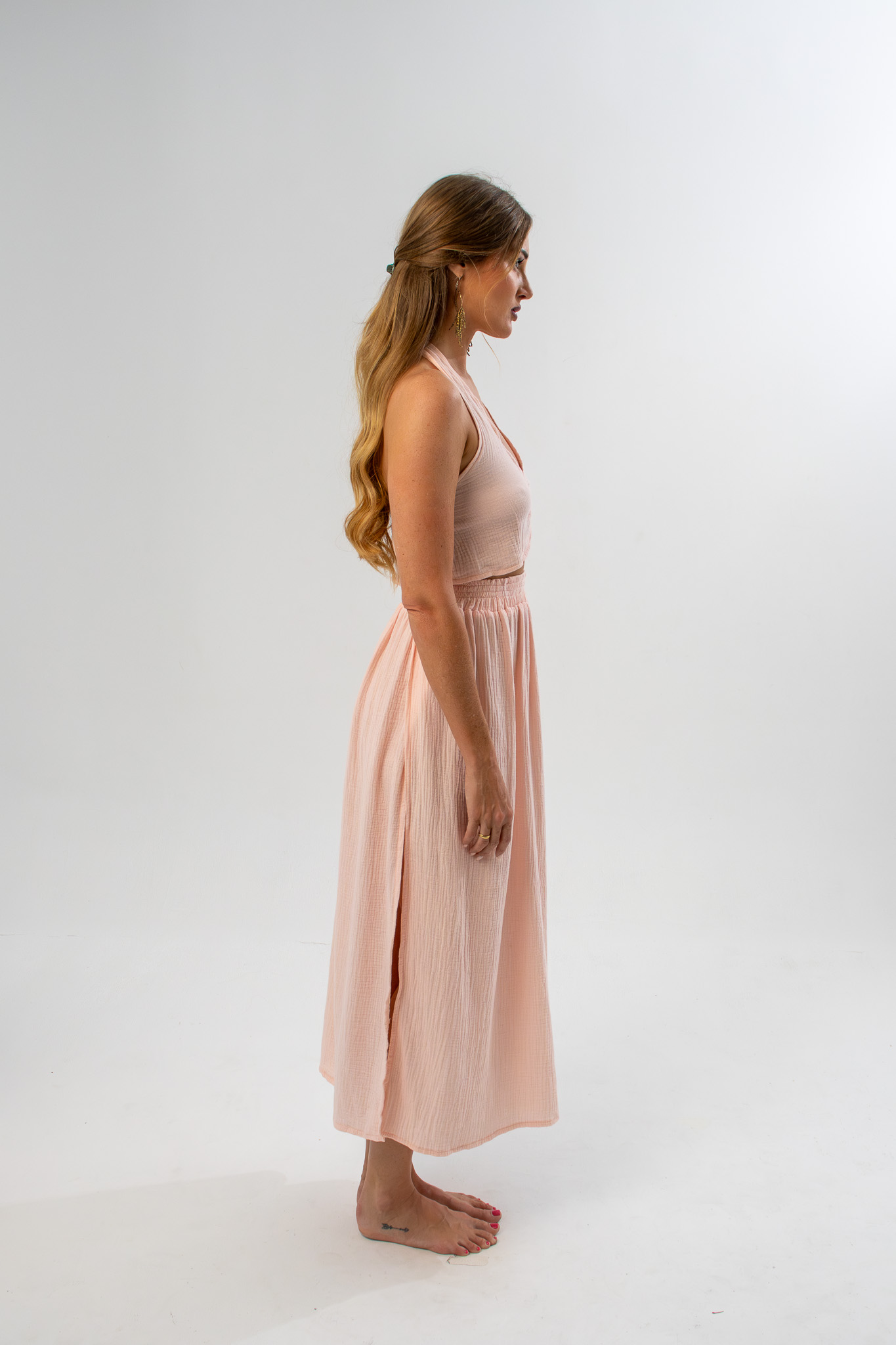Effortlessly cool and undeniably chic, the March Top is crafted from 100% muslin cotton for a lightweight, breathable feel. Featuring a bold metal ring detail, it adds a subtle edge to its relaxed silhouette. Perfect for beach days, casual outings, or layering with your favorite pieces, this top blends comfort and statement style in one.