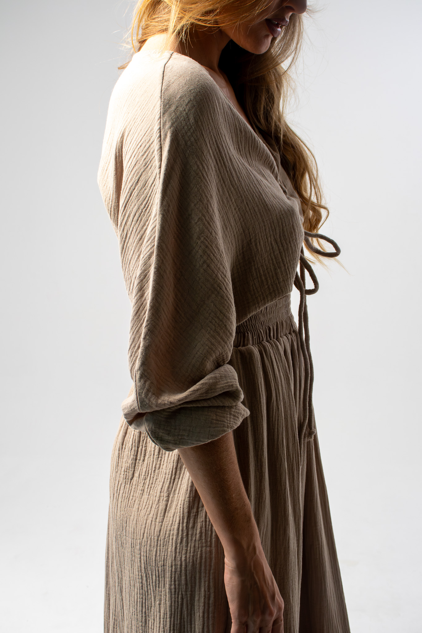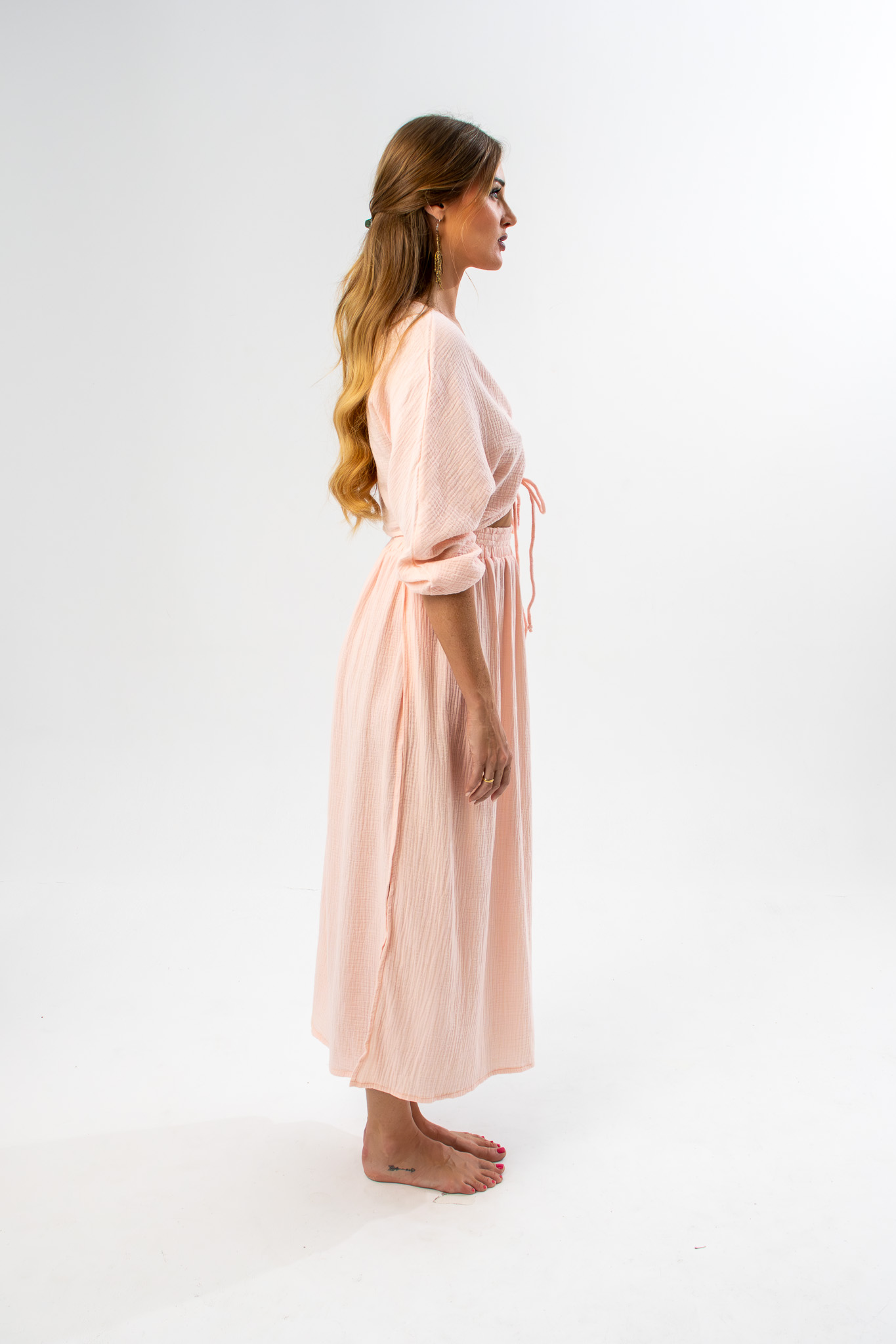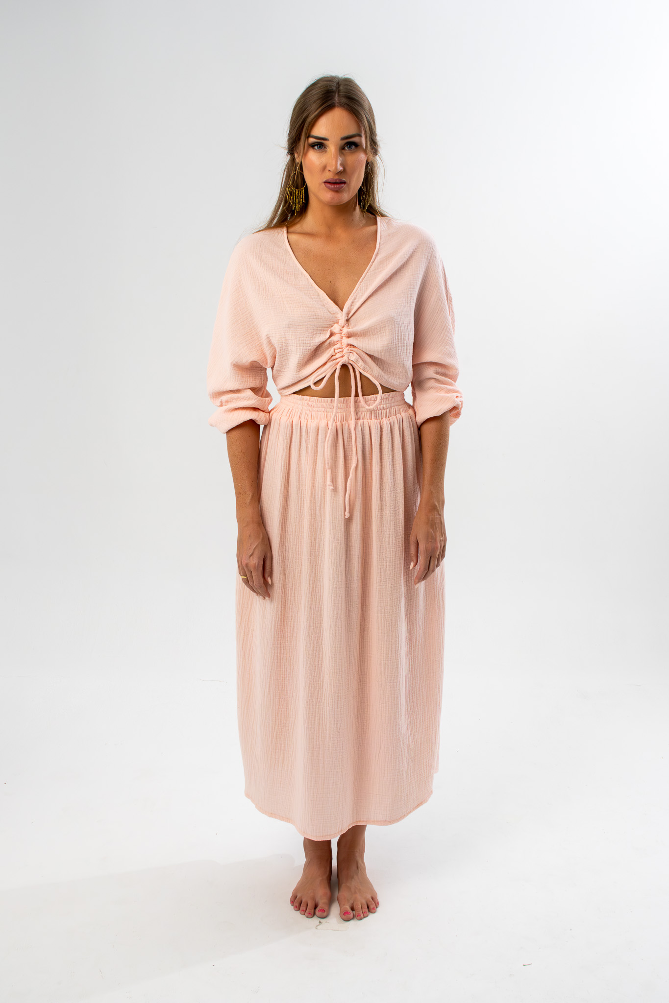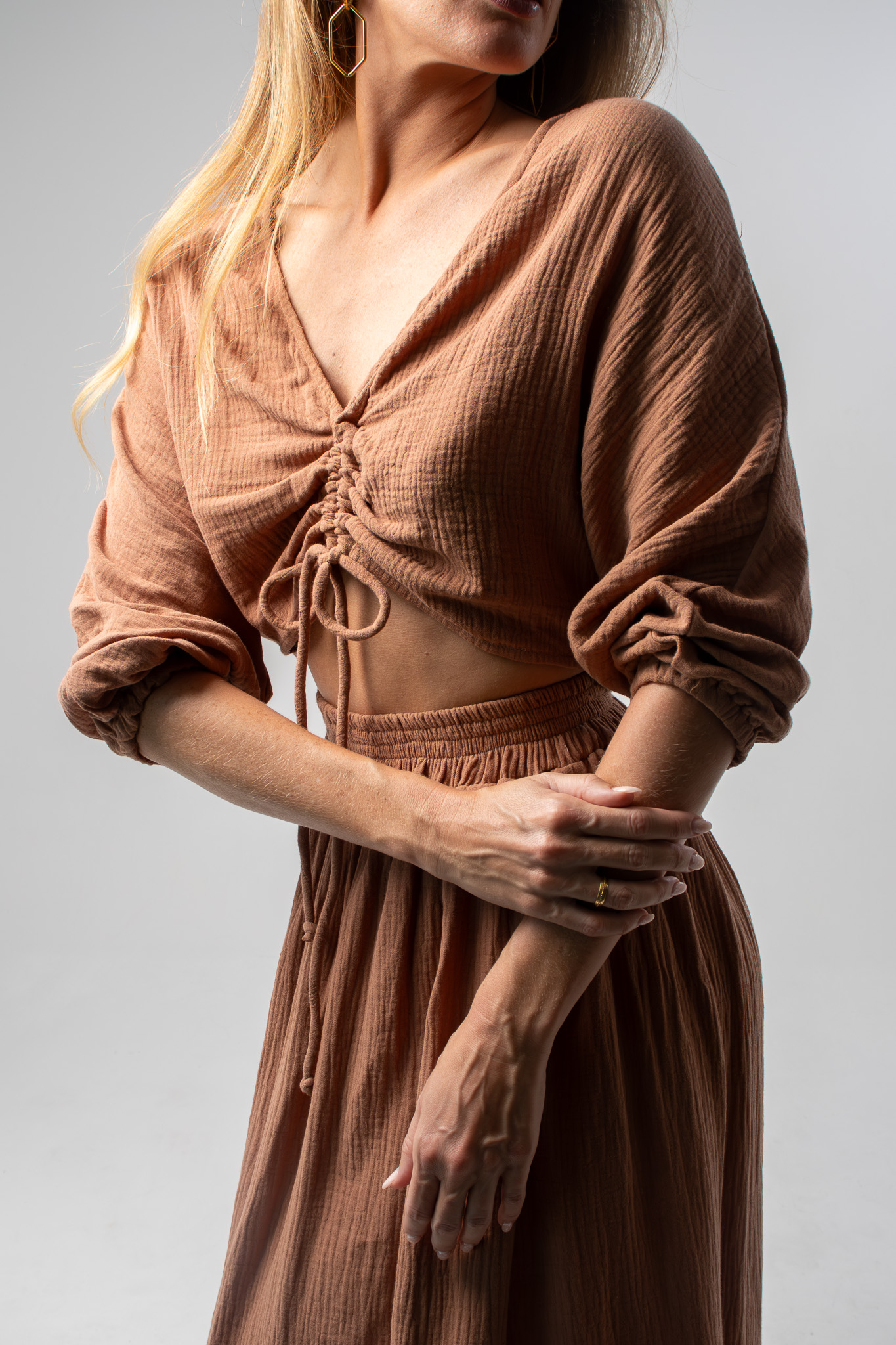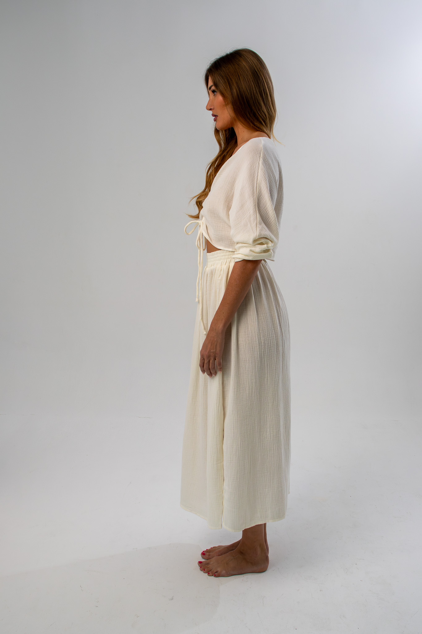 The Nouri Qunneth Top in 100% muslin cotton features a charming front bow detail. Lightweight and breathable, it’s perfect for warm days and pairs easily with various bottoms for a chic, effortless look!