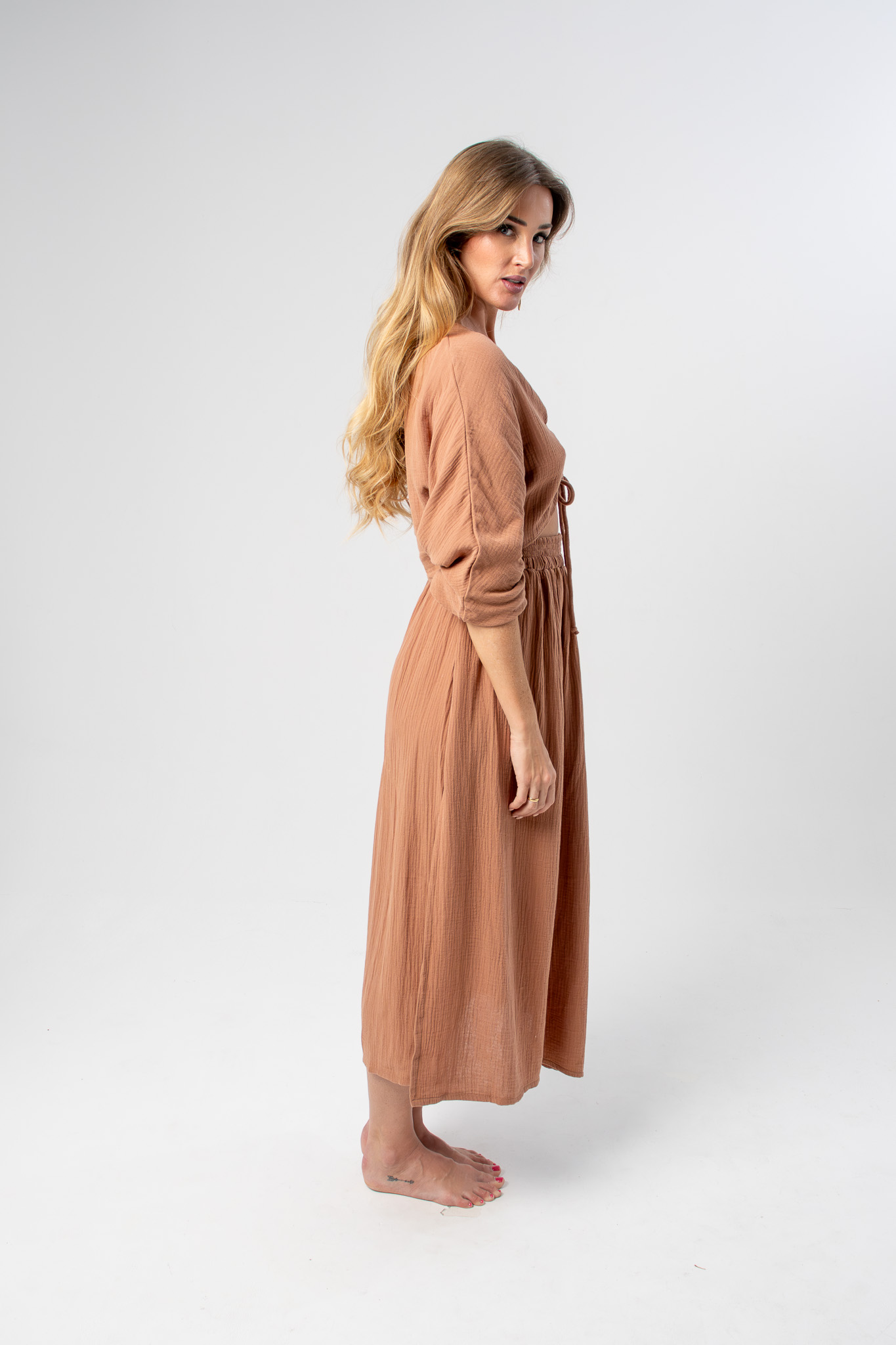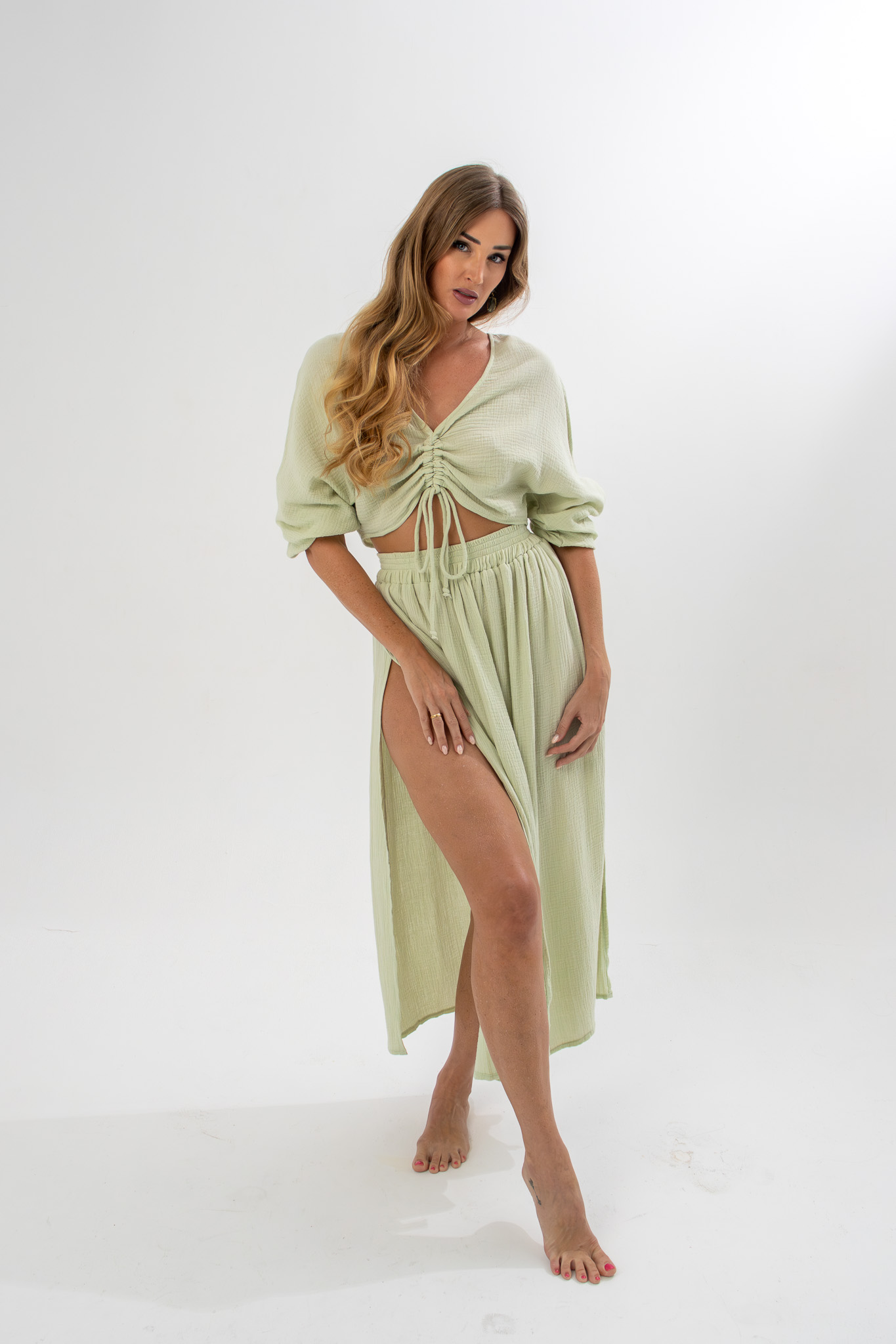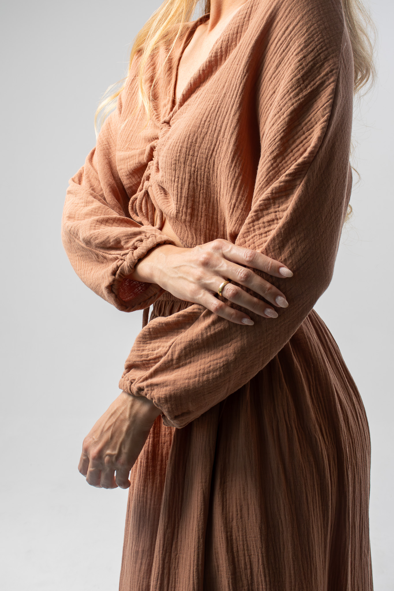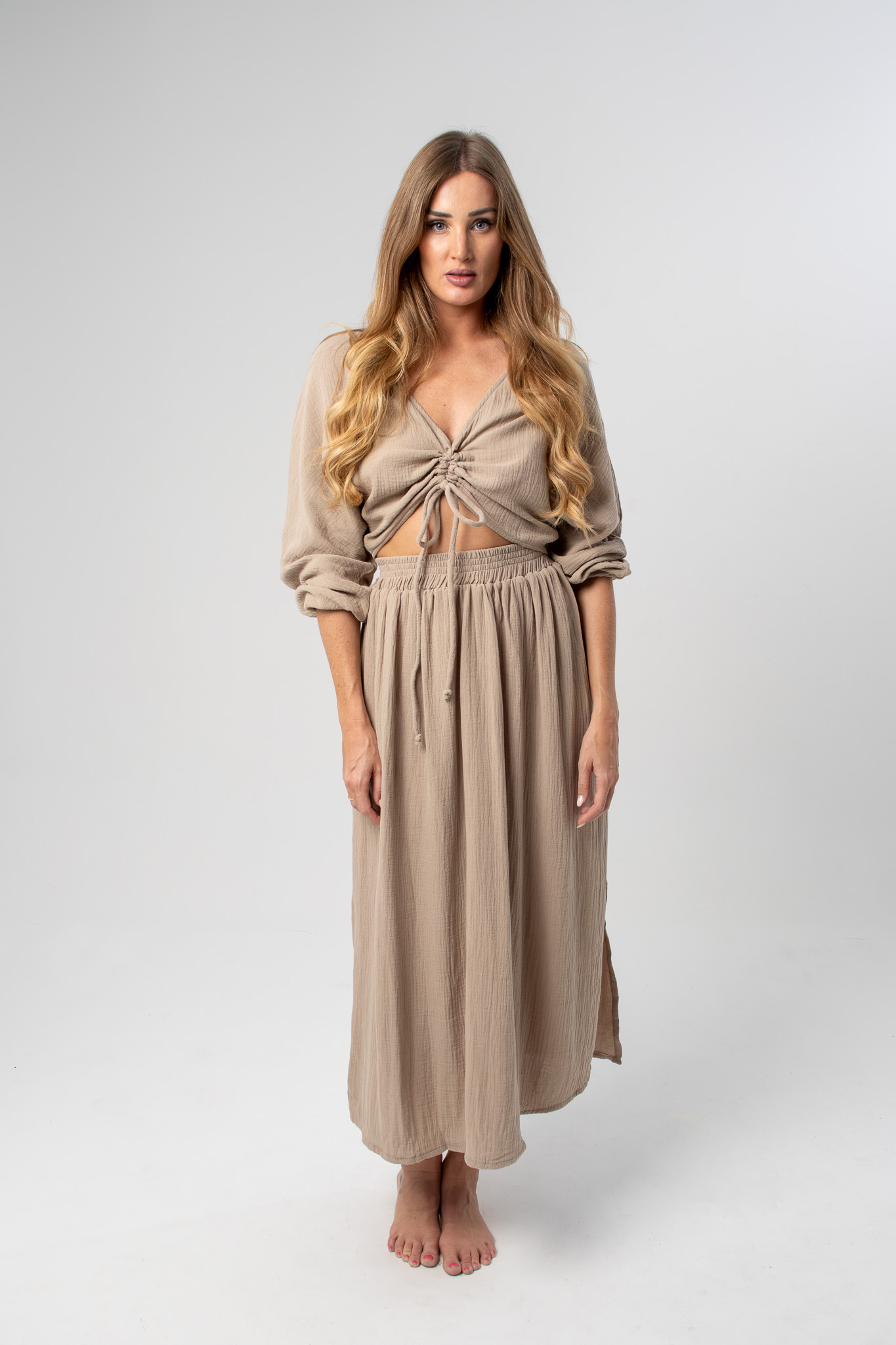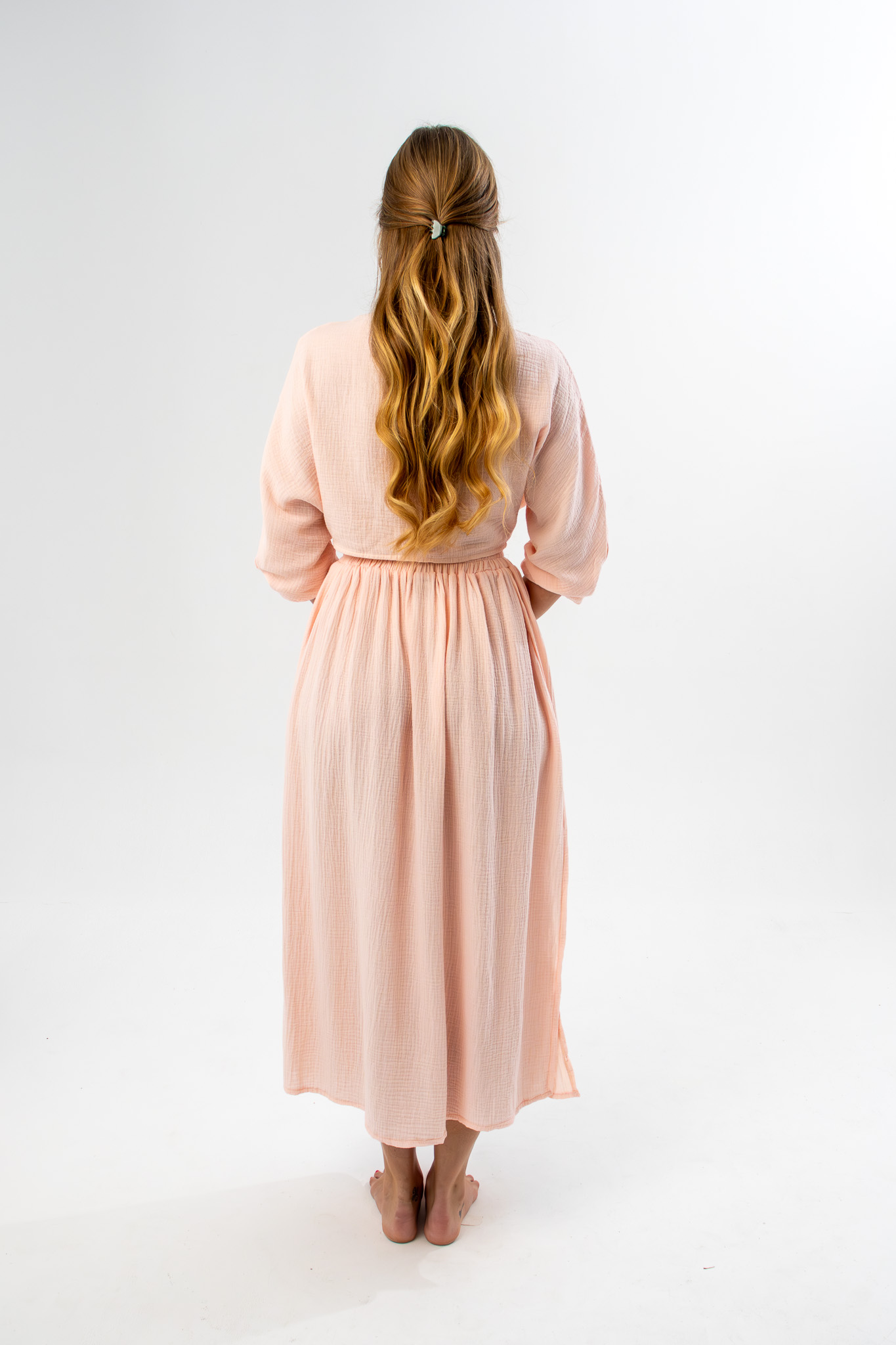 The Nouri Qunneth Top in 100% muslin cotton features a charming front bow detail. Lightweight and breathable, it’s perfect for warm days and pairs easily with various bottoms for a chic, effortless look!